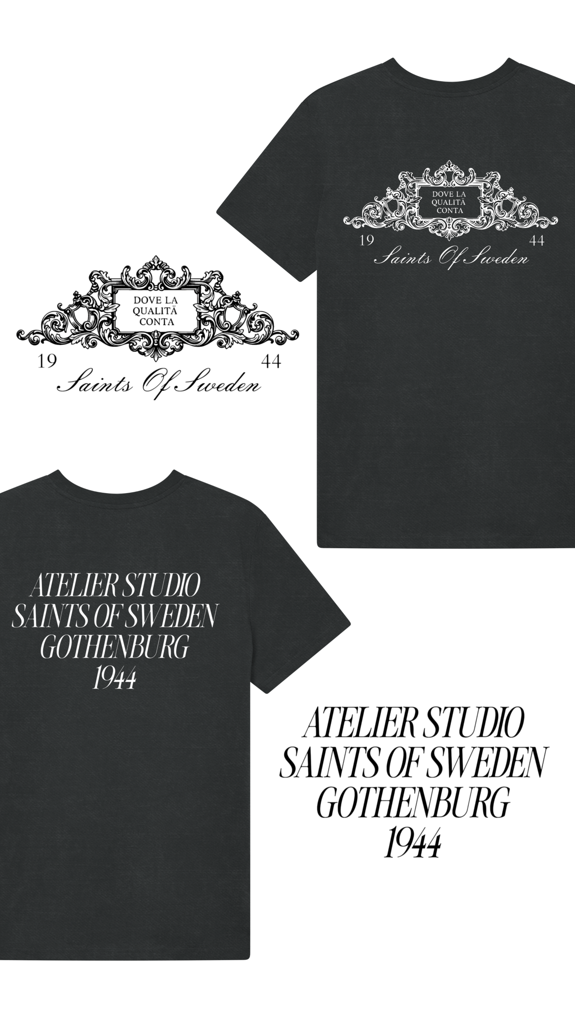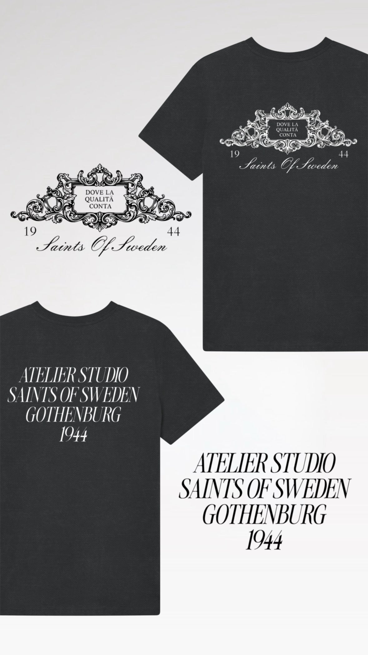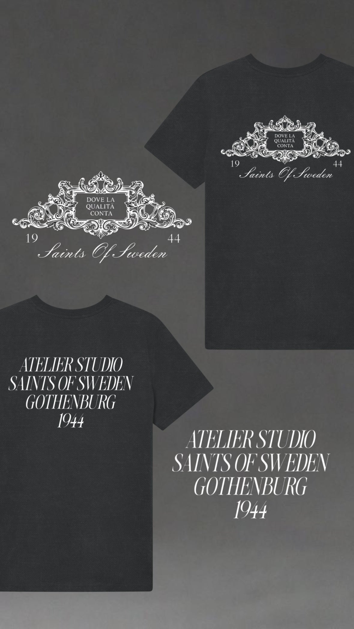 The Saints Of Sweden Vintage Washed Luxury Club Men T-shirt X The Saints Of Sweden Vintage Washed Atelier Studio Men T-shirt Bundle has a timeless medium cut and a washed look. It features 1x1 ribbing at the neck, a taped inside neck, and twin-needle topstitching at the hem and cuff. The T-shirt is made from mid-weight 100% organic cotton. Produced on demand, please select your size carefully as returns and exchanges are not accepted, except for approved faulty items which may be replaced.